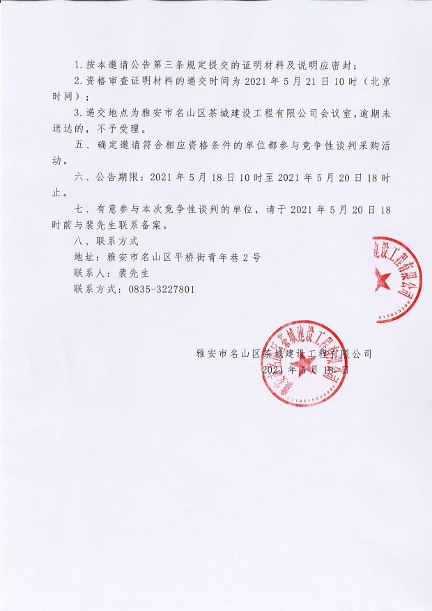 雅安市名山區茶城建設工程有限公司及子公司審查 采購詢價結果公告...